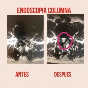 Se observa el cambio (circulo rojo) tras el recalibrado endoscópico del segmento L4-L5
